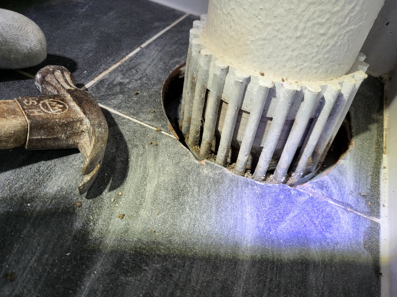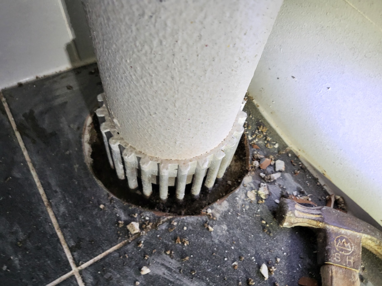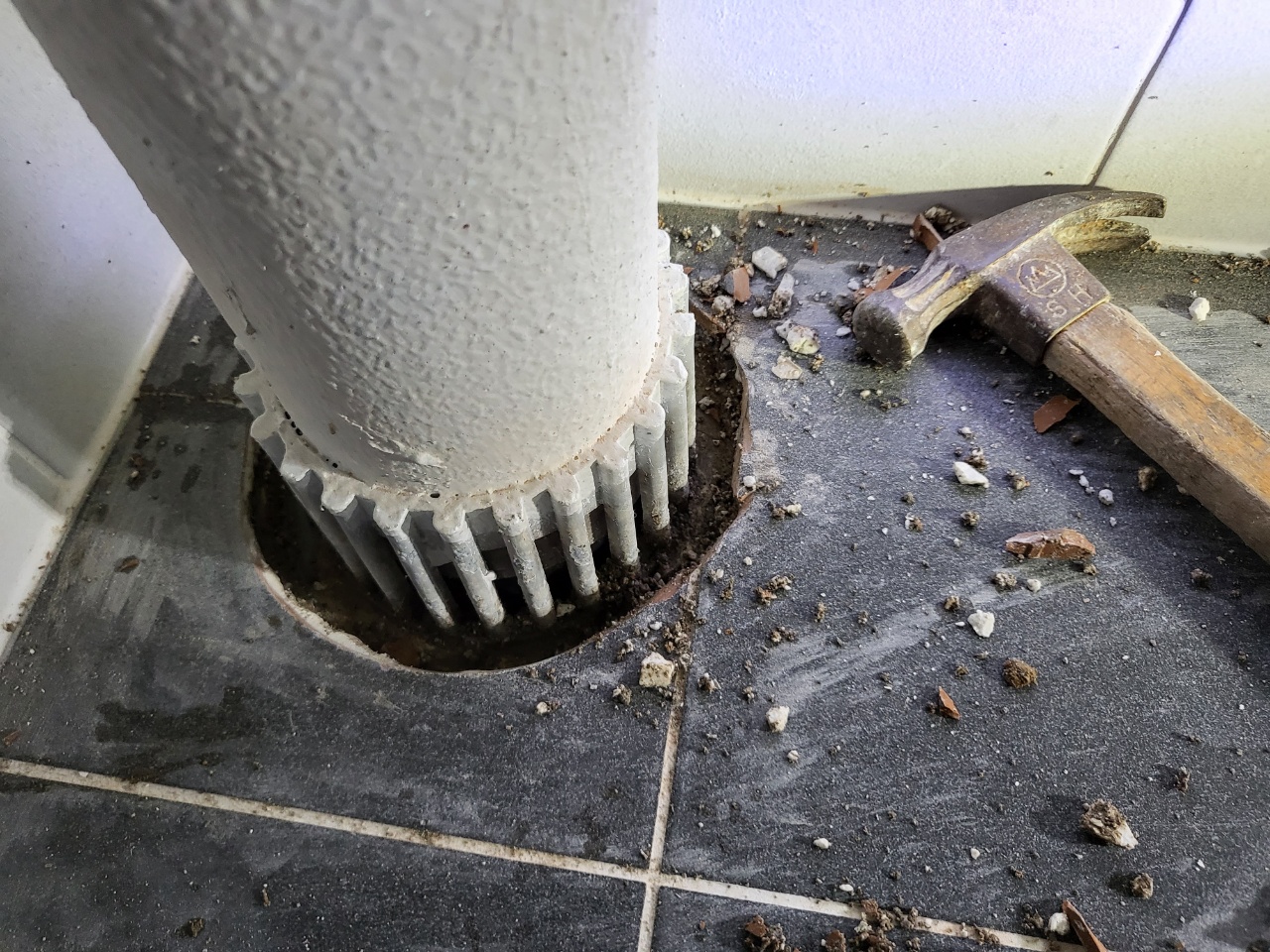 우수관 공용배관 주변으로 타일을 보기 좋게 깨고 정리를 하는 작업입니다.