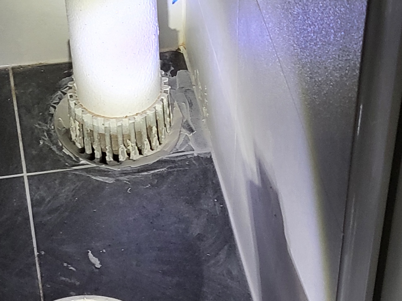 물을 부으서 보니 타일 주변으로 물이 스며들어가는 것을 확인할 수 있습니다.