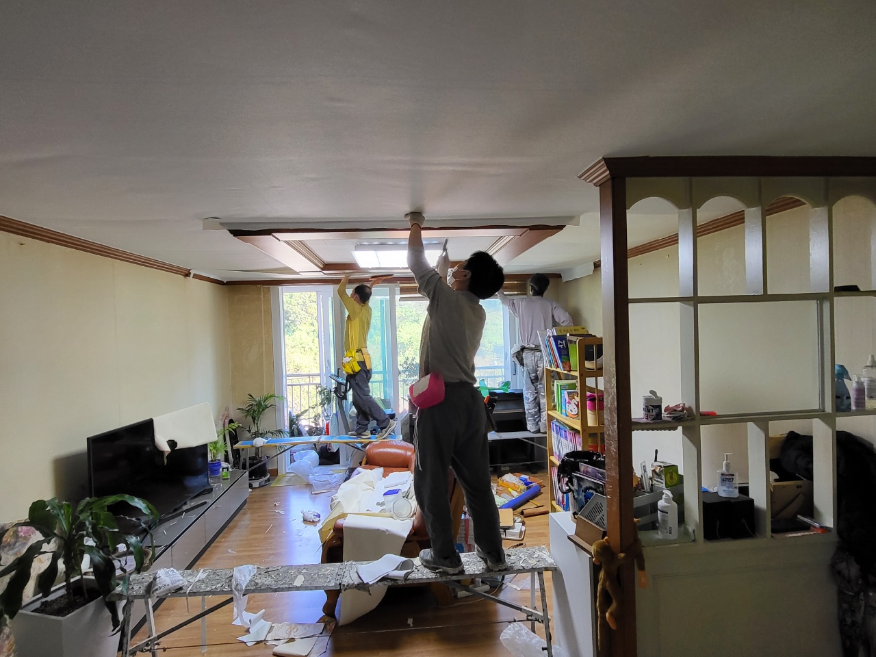 천장 석고보드의 작업과 주변 몰딩, 그리도 도배의 작업은 도배지를 튼튼하게 만들어 주고 집안의 인테리어 효과에 기본입니다.