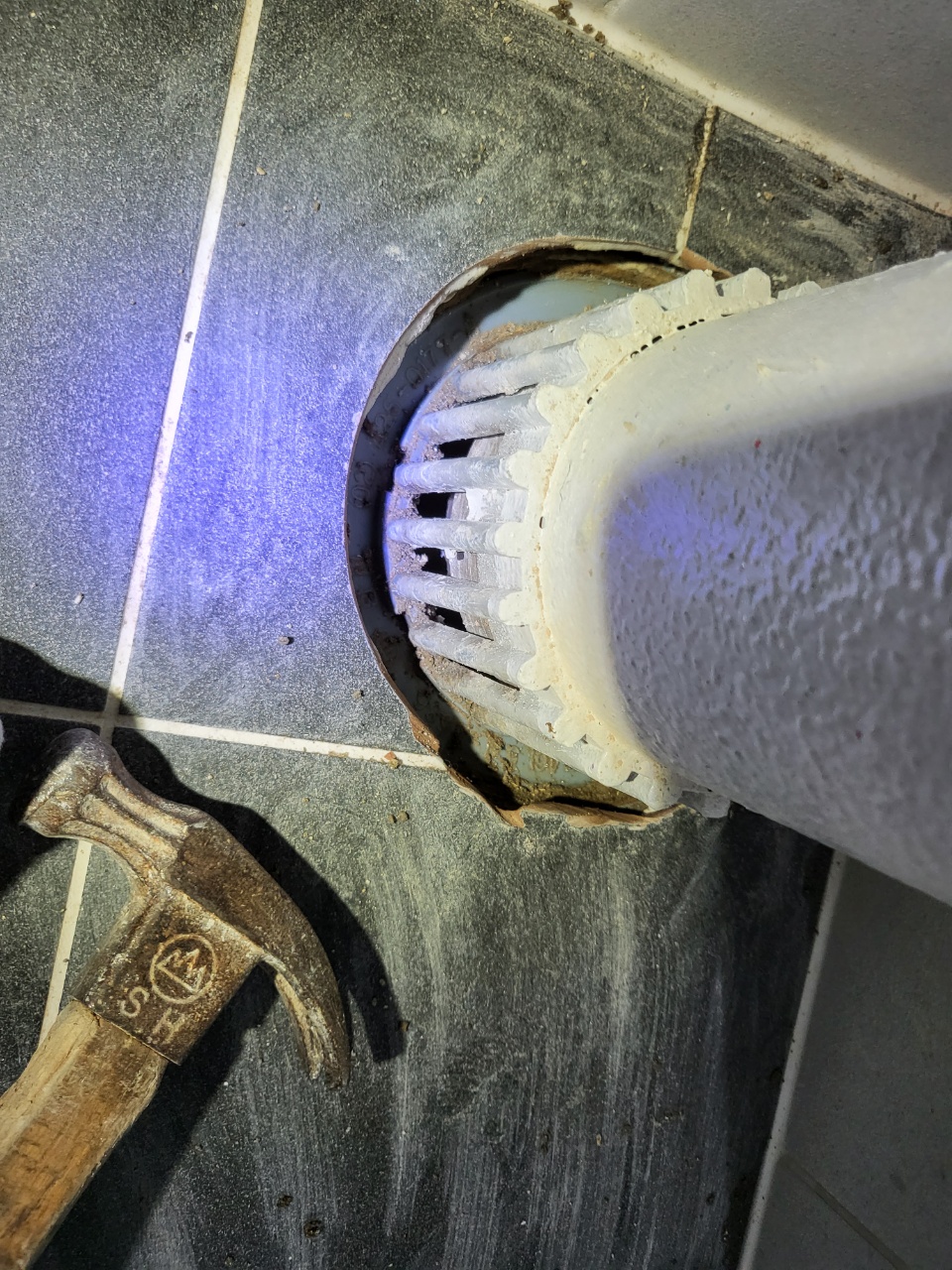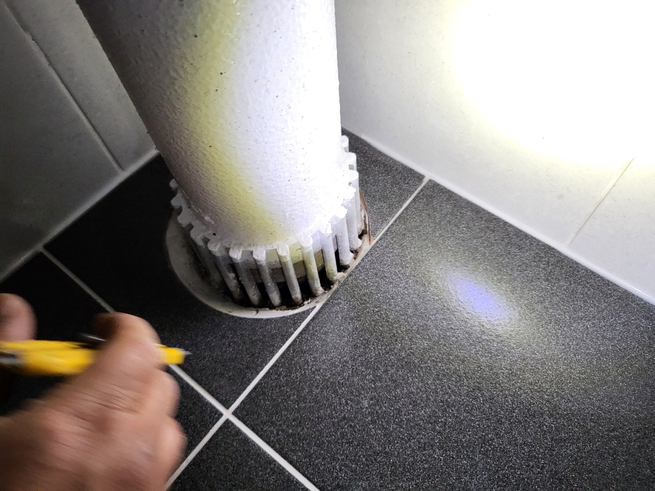 우수관 공용배관 주변으로 타일을 보기 좋게 깨고 정리를 하는 작업입니다.